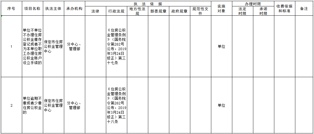 保定市住房公积金管理中心行政执法事项清单